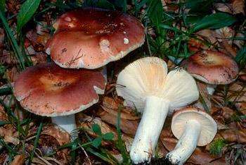 中毒類型屬于橫紋肌溶解型。菌蓋表面淺灰色至煤灰黑色,菌蓋直徑6-12cm,成熟后中部下凹呈漏斗狀。菌柄粗短,一般5-9cm,淺灰色,內(nèi)部松軟。菌褶白色,受傷后易變紅色。菌肉白色,受傷后易變紅色而不再變黑色。劇毒,近年來在貴州省常有發(fā)生中毒事件,病死率極高。該菌與老百姓經(jīng)常采食的紅菇屬中的其它種類如稀褶紅菇、密褶紅菇極為相似,老百姓都稱為火炭菌,很難從外觀形態(tài)上將他們區(qū)分開來。多在進(jìn)食毒蘑菇15分鐘至2小時(shí)發(fā)病,初出現(xiàn)惡心、嘔吐、腹瀉、腹痛等胃腸道癥狀,6-12小時(shí)后出現(xiàn)出血尿或血紅蛋白尿、肌肉痙攣性疼痛、肌酸激酶急劇增加等橫紋肌溶解的癥狀,最后出現(xiàn)急性腎功能衰竭,甚至死亡。