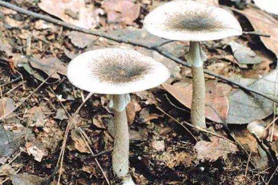 灰色至深灰色、暗褐色至近黑色,菌蓋中等大小,直徑5~9 cm,表面具深色纖絲狀隱生花紋或斑紋。邊緣平滑無溝紋。菌褶離生,白色,較密;短菌褶近菌柄段漸變狹。菌柄長5~15cm,白色至淺灰色,常被淺褐色鱗片,基部近球形,有菌托,白色。菌環(huán)頂生至近頂生,灰色,膜質(zhì)。該菌與老百姓俗稱的茅草菌、芝麻菌、傘把菇等蘑菇外觀非常相似,從外觀形態(tài)上很難辨識(shí)。劇毒!可造成急性肝損害,常出現(xiàn)假愈期,是我國南方地區(qū)主要導(dǎo)致死亡的種類。