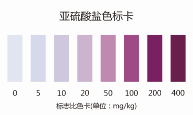 2.1:2分鐘后觀察檢測(cè)管中顏色的深淺,紫紅色顏色越深,表示樣品中亞硫酸鹽的含量越高。