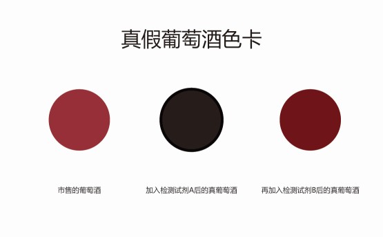 2.3:遇堿變了色的真葡萄酒,加入檢測(cè)試劑B后又還原到了最初的紫紅色,也恢復(fù)了之前的透光感。而勾兌假酒依然沒(méi)有絲毫變化。