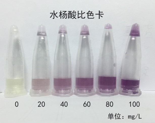 2.2:溶液呈紫色,說(shuō)明溶液中含有水楊酸。溶液的顏色越深,濃度越高。(見(jiàn)色卡)