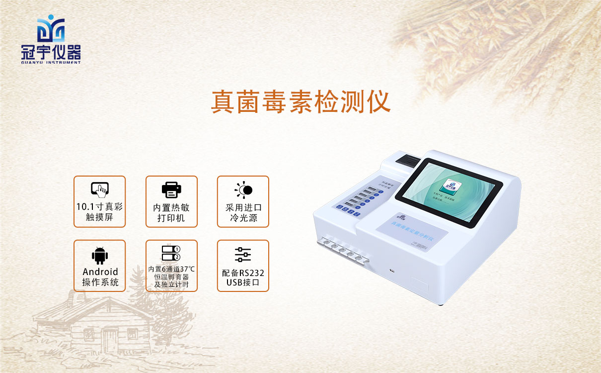 冠宇儀器真菌毒素快速檢測儀能夠快速定量檢測糧食、飼料、谷物、食用油、調(diào)味品等食品中T2毒素、嘔吐毒素、赭曲霉毒素、伏馬毒素、玉米赤霉烯酮,適用于糧油監(jiān)測中心、糧油飼料生產(chǎn)加工、食品加工貿(mào)易、畜禽養(yǎng)殖戶自查、工商質(zhì)監(jiān)部門用于市場快速篩查等,能夠快速準(zhǔn)確定量檢測出食品中的真菌毒素含量,杜絕真菌毒素超標(biāo)食物流入市場。
