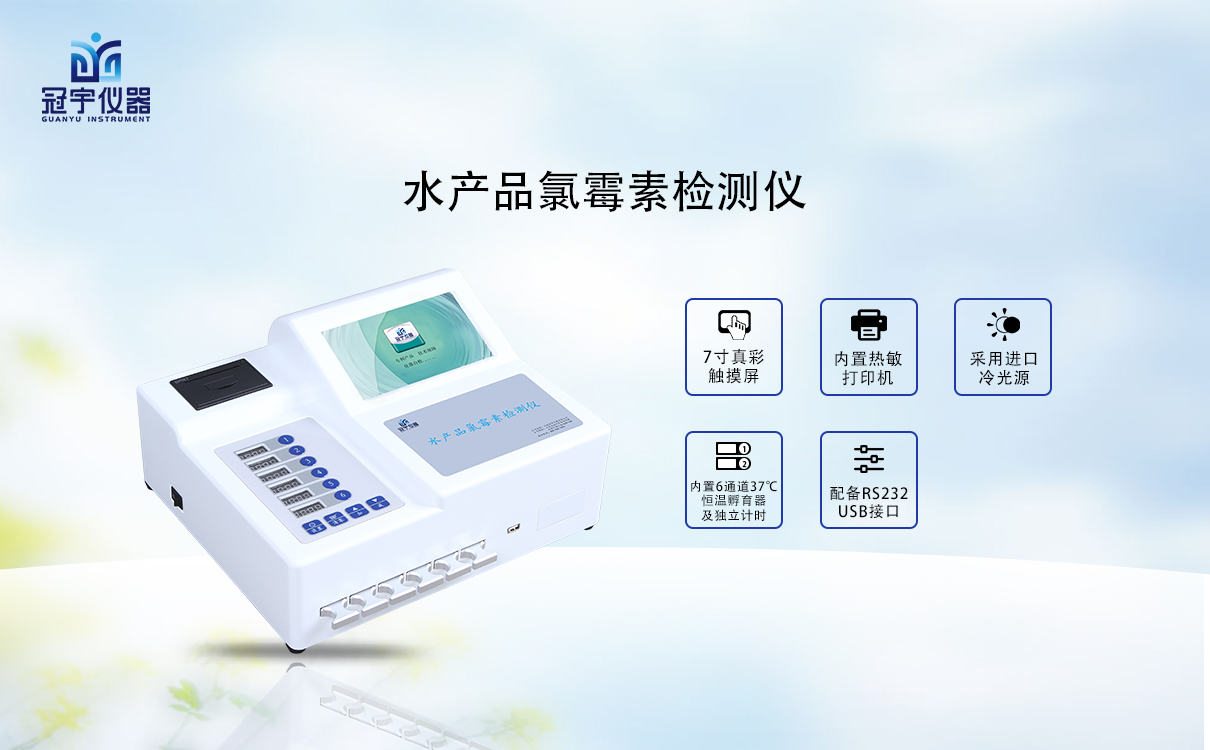 冠宇儀器GY-720水產(chǎn)品氯霉素檢測儀應(yīng)用競爭抑制免疫層析的原理,通過檢測線熒光定量卡中的熒光強(qiáng)弱程度,定量分析待檢樣品中氯霉素殘留含量。http://www.pnfitness.com/products-zh-2622.html