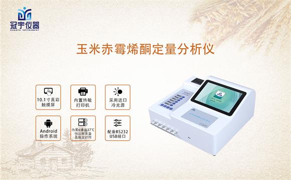 冠宇儀器玉米赤霉烯酮快速測(cè)試儀能夠快速定量檢測(cè)玉米、小麥、大米、大麥、小米和燕麥等谷物、飼料、面粉、食用油、調(diào)味品中玉米赤霉烯酮,操作簡(jiǎn)便,只需一步加樣,無(wú)需標(biāo)準(zhǔn)品,無(wú)需做標(biāo)準(zhǔn)曲線,采用熒光免疫定量分析儀讀數(shù),結(jié)果準(zhǔn)確可靠且可現(xiàn)場(chǎng)打印,準(zhǔn)確性高度符合HPLC法的檢測(cè)結(jié)果,為飼料質(zhì)量安全的快速檢測(cè)和控制提供了一種全新的技術(shù)手段,廣泛應(yīng)用于糧油監(jiān)測(cè)中心、中藥材加工廠、制藥廠、糧油飼料生產(chǎn)加工、食品加工貿(mào)易、養(yǎng)殖企業(yè)、面粉廠、豆制品加工生產(chǎn)企業(yè)、糧食局、畜禽養(yǎng)殖戶自查、工商質(zhì)監(jiān)部門(mén)用于市場(chǎng)快速篩查等。