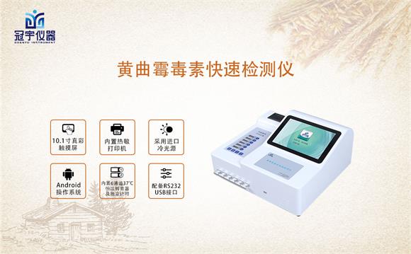 不管是黃曲霉素素B1還是黃曲霉毒素M1,都是是污染農(nóng)產(chǎn)品與食品最常見(jiàn)的真菌毒素之一,所有對(duì)黃曲霉毒素進(jìn)行抽檢和檢控工作也是不可缺少的。冠宇儀器黃曲霉毒素快速測(cè)試儀能夠快速定量檢測(cè)玉米、小麥、大米、大麥、小米和燕麥等谷物、飼料、面粉、食用油、調(diào)味品、乳及乳制品等中黃曲霉毒素B1、黃曲霉毒素M1的含量,適用于糧庫(kù)收糧檢測(cè)、食品監(jiān)測(cè)中心、糧油飼料生產(chǎn)加工、食品加工貿(mào)易、畜禽養(yǎng)殖戶(hù)自查、工商質(zhì)監(jiān)部門(mén)用于市場(chǎng)快速篩查等。