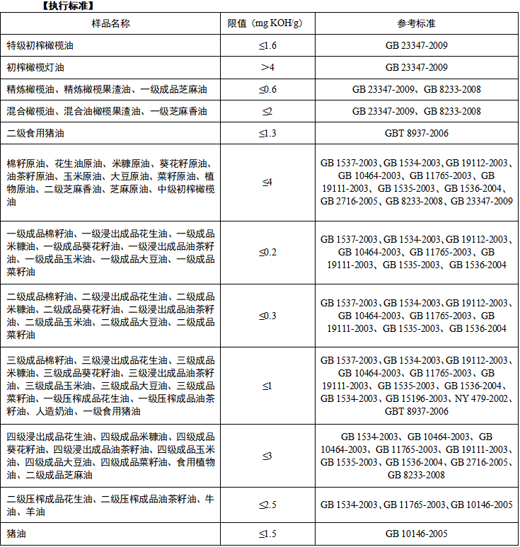 油脂在貯存期間,由于微生物、水分、溫度、光照、脂肪酶等因素的作用發(fā)生緩慢水解,產(chǎn)生游離脂肪酸,其置于油中使酸價(jià)增大,貯存穩(wěn)定性降低。酸價(jià)可作為油脂脂肪水解程度的指標(biāo),亦可作為酸敗程度的指標(biāo)。酸價(jià)越小,即油脂質(zhì)量越好,精煉程度和新鮮度越好。一般要求食用植物油的酸價(jià)不得>5 mg KOH/g,酸價(jià)略高不會(huì)對(duì)人體健康產(chǎn)生損害;但如果酸價(jià)過(guò)高,則會(huì)導(dǎo)致人體腸胃不適、腹瀉并損害肝臟,因此酸價(jià)測(cè)定結(jié)果的準(zhǔn)確性對(duì)人體健康非常重要。