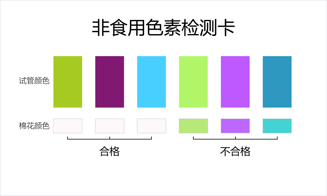 1.2:吸取過濾后的樣品液10mL于試管或三角瓶中,加入一小塊檢測試棉,沸水中加熱1分鐘,用鑷子取出檢測試棉,用清水漂洗試棉,如試棉染上的顏色不褪的為非食用色素。